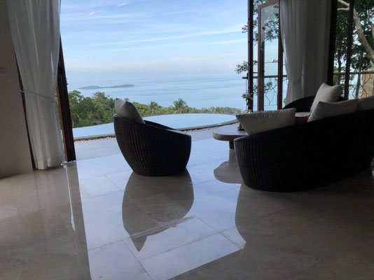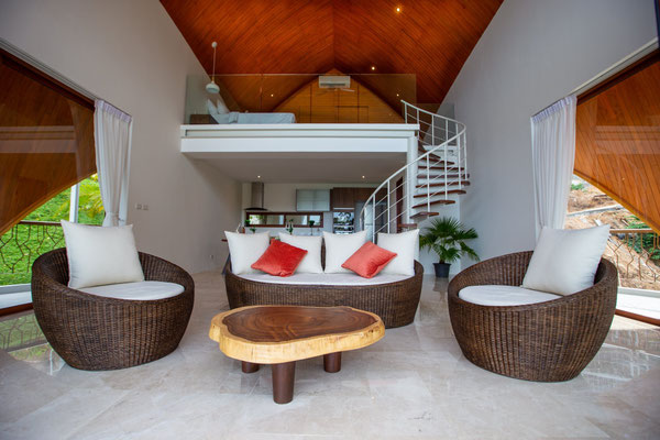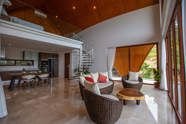 - salon principal avec vue mer et mezzanine avec chambre spacieuse et vue imprenable