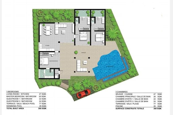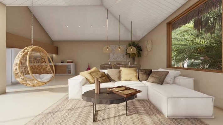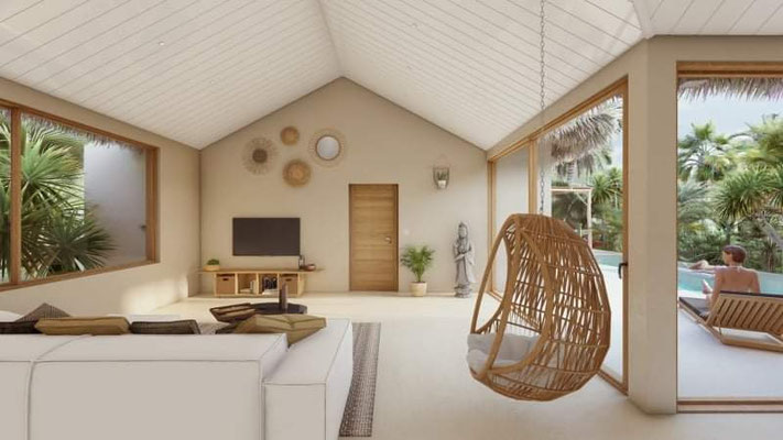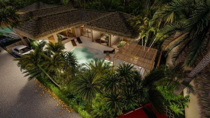Les villas modernes disposent de jardins luxuriants et ont été conçues dans un style tropical pour se fondre dans le décor. L’espace extérieur est agrémenté d’un sala en bois, de bains de soleil autour de la rafraîchissante piscine à débordement.