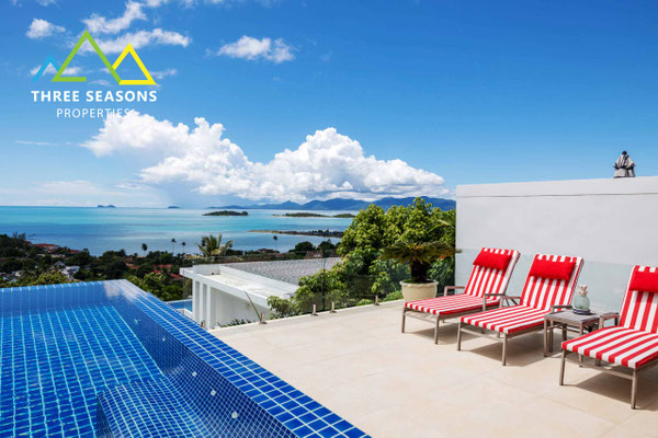 Située dans une résidence de luxe dans les collines de Bang Rak, cette villa offre une vue panoramique imprenable sur la mer depuis la baie de Chaweng, les collines de Chaweng, les baies de Bangrak, le village de pêcheurs et Mae Nam, le parc marin d'Angthong, Big Buddha, Koh Som et Koh Phangan, ainsi que de magnifiques couchers de soleil.