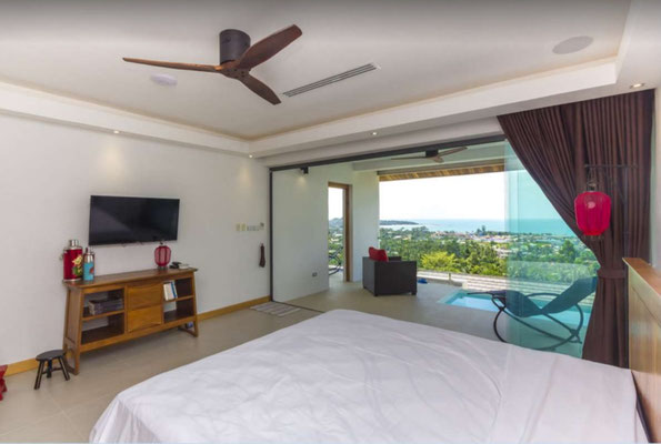 Contemporary quality villa (2017) overlooking Lamai Bay and its coconut grove (280 degrees view).