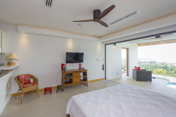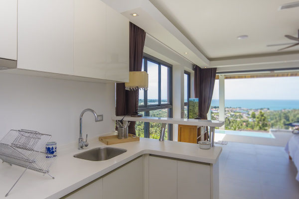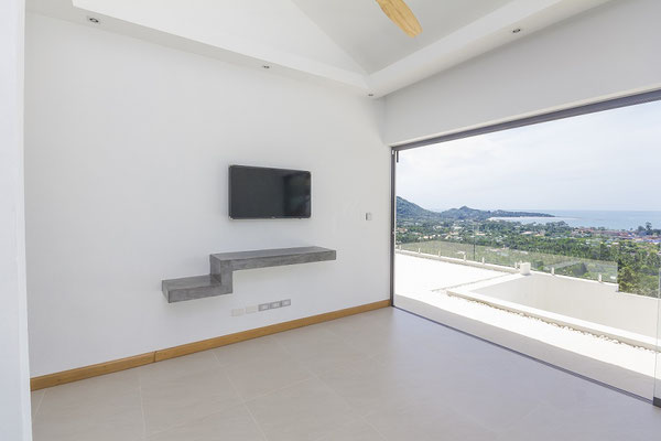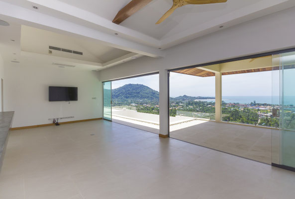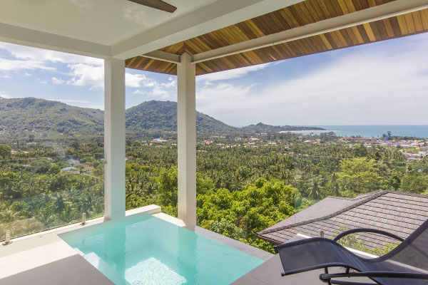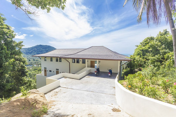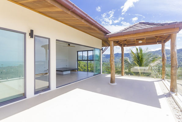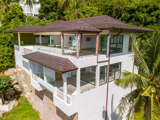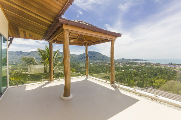 Villa contemporaine de qualité (2017) avec vue sur la Baie de Lamai et sa cocoteraie (280 degrés).