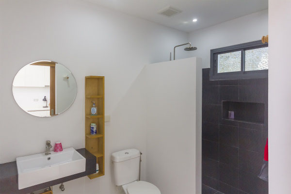 Unique architecture on two levels: a big pool-villa of 3 bedrooms (270 sqm) on the ground floor and at lower floor, two independent pool-studios of 70 m2 which both have a private pool.