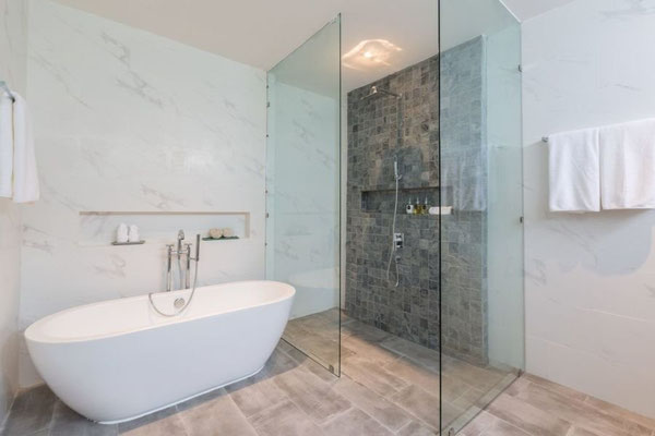 Salle de bain complète supplémentaire avec douche à effet pluie (dans le salon)- Eau chaude et froide dans chaque prise- Eclairage LED- Garage 2 voitures