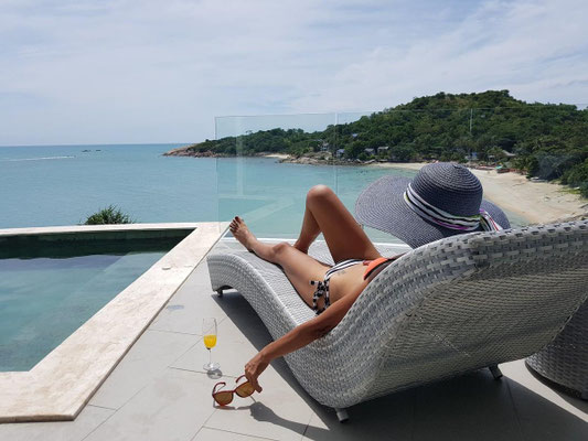 The property faces northeast and you can enjoy Koh Samui's best sunrises from the pool deck or while relaxing in the jacuzzi. This luxury 2 bedroom 3 bathroom villa has a fully furnished and equipped western kitchen that wraps the ceiling to floor picture window that allows you to enjoy wonderful ocean views over.