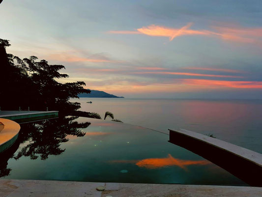 L'espace extérieur offre une piscine privée à débordement de 4x9m vue panoramique sur l'océan.