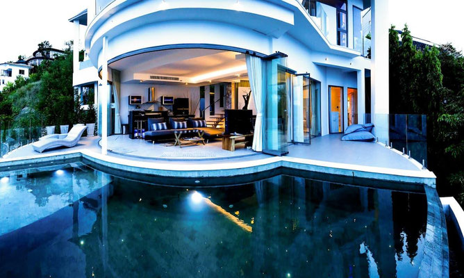This contemporary designed ocean view villa is located in Pla leam overlooking the ocean.