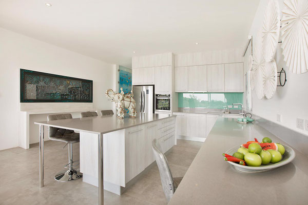 Perchée sur une colline en pente à l'extrémité nord-est , la villa est située dans une nouvelle résidence de luxe avec piscine à débordement et vue imprenable sur l'océan et le coucher du soleil.