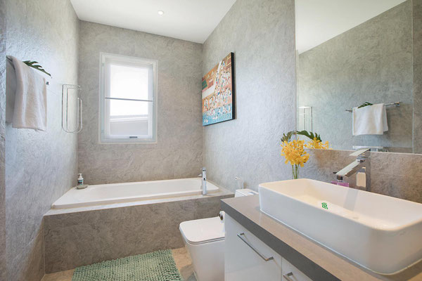 Cuisine entièrement équipée avec coin repas, les 3 chambres disposent d'une salle de bains privative et d'une salle de bains pour invités.