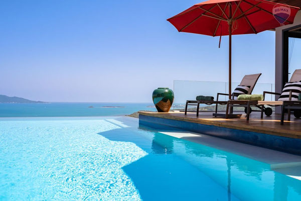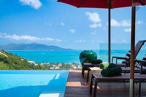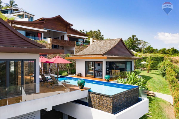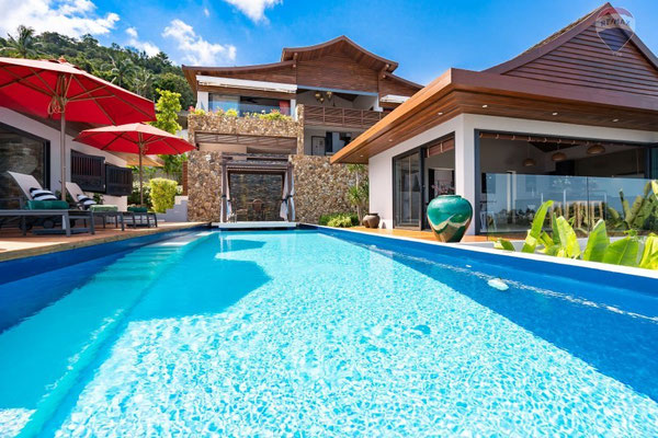 Magnifique villa de 4 chambres, 5 salles de bains, piscine privée avec vue sur mer située dans le quartier de Bophut.