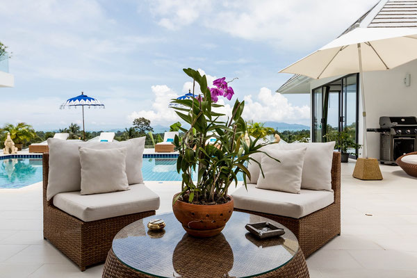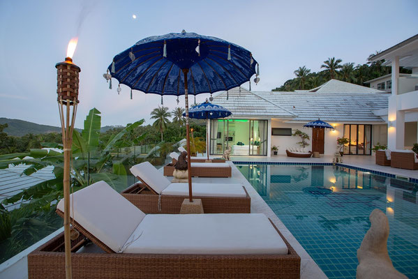 Superbe villa moderne avec vue sur la mer au cœur de la palmeraie de Mae Nam.