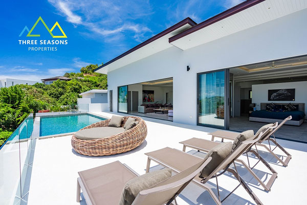 Superbe villa vue mer avec 5 chambres, 6 salles de bain et piscine privée située dans le quartier calme de Plai Laem