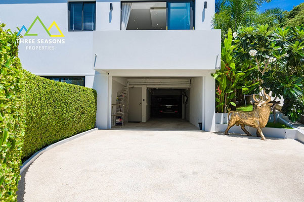 Un garage pour 3 voitures et un parking extérieur supplémentaire pour 1 voiture pour le stationnement.