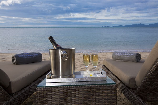 Réveillez-vous avec la vue sur la mer et faites des promenades matinales le long du sable doré, ou terminez votre journée avec une boisson, en vous faisant masser les pieds au sala en bord de mer, avec le ciel étoilé au-dessus.