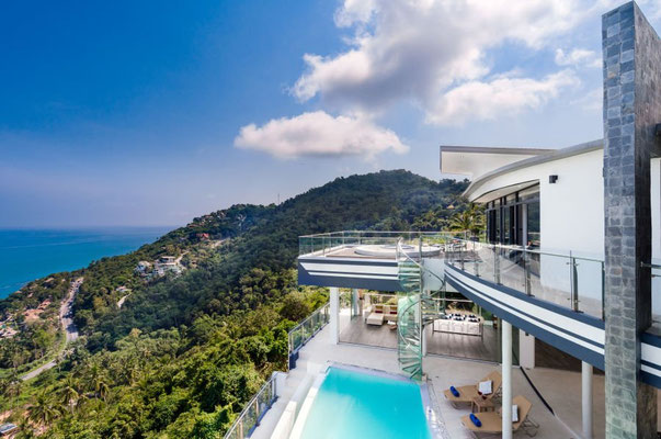 The luxury villa is ideally designed for experiencing the enchanting ocean views and breezes. This villa won “Best Villa Architectural Design” in 2014. If you are looking for modern luxury design, stunning views, peace & tranquility yet close to the islands main attractions, amenities & best beaches then this villa certainly ticks all the boxes. The villa is just 10 minutes from Chaweng Beach, 15 minutes to Central Festival Shopping Mall, city center; 20 minutes to Samui International Airport.