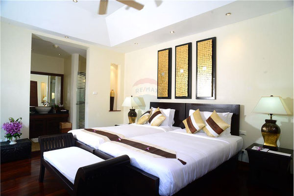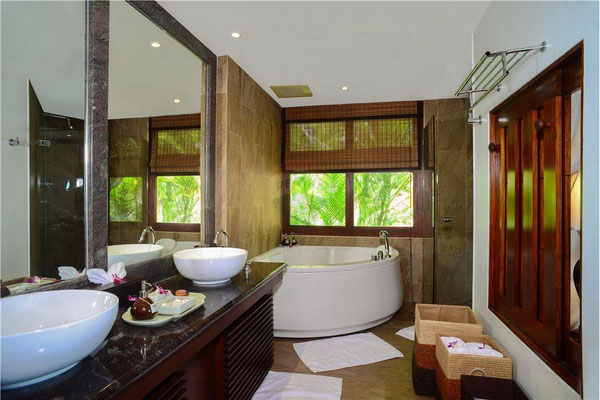 La villa dispose de 4 chambres chacune avec salle de bains privative dans 4 unités séparées sur son terrain.