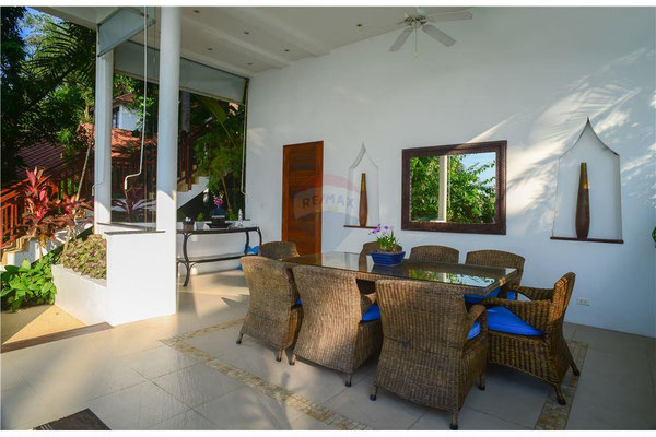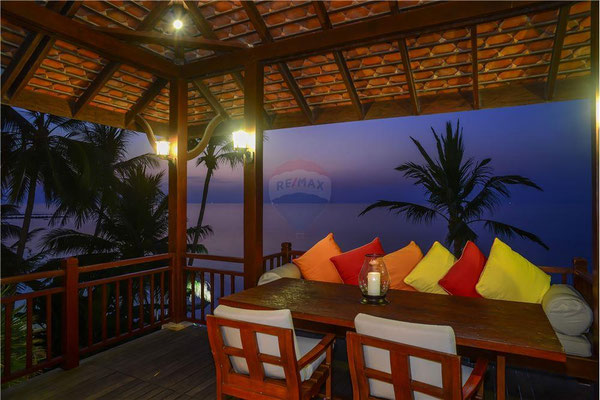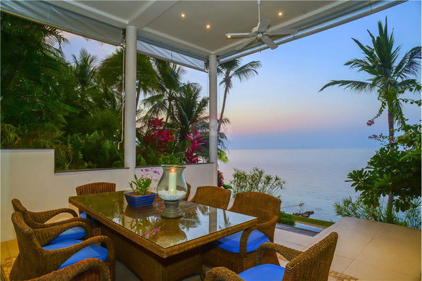 -Il y a un espace de détente entièrement couvert près de la piscine où vous pourrez dîner tout en ayant une vue imprenable sur la mer et les couchers de soleil.