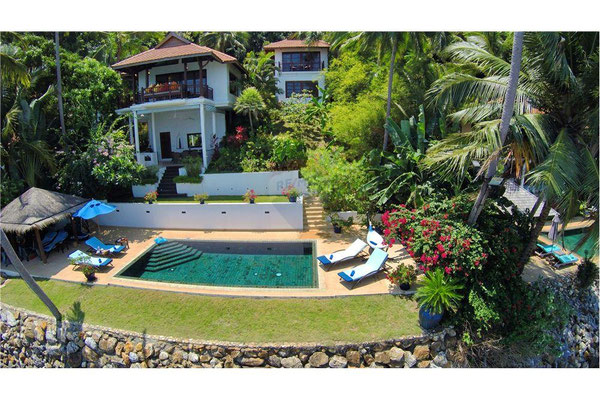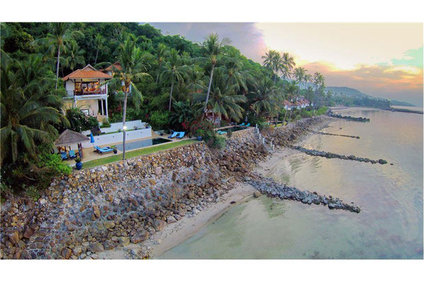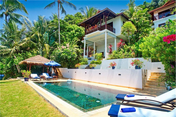 Cette luxueuse villa bien entretenue de 4 chambres face à l'océan est située dans l'un des quartiers les plus calmes de Koh Samui dans un environnement naturel paisible.