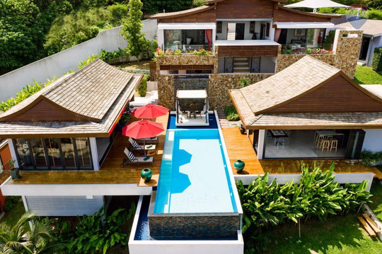 Magnifique villa de 4 chambres, 5 salles de bains, piscine privée avec vue sur mer située dans le quartier de Bophut.