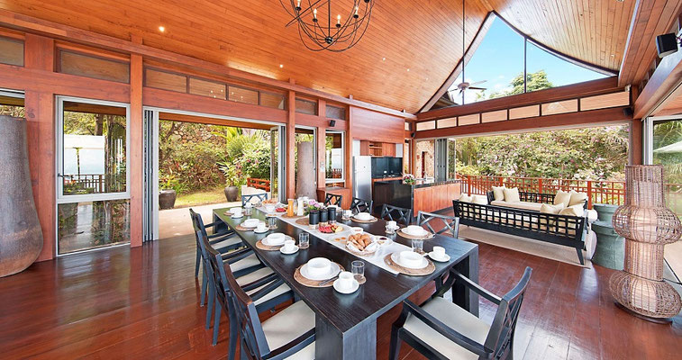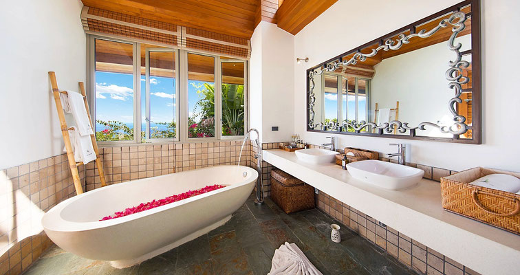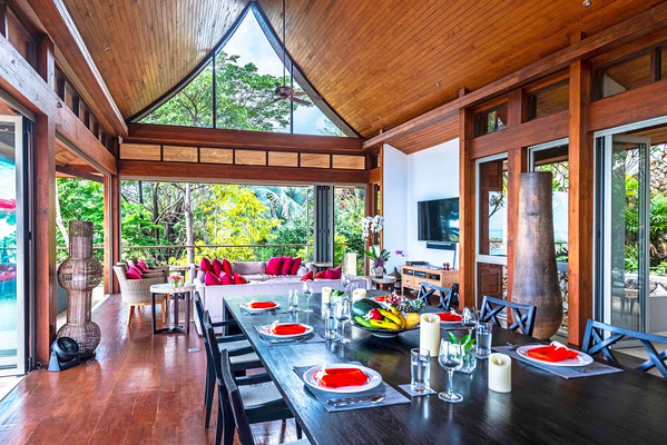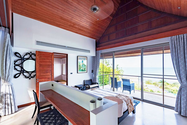 Un mélange fantastique d'architecture à la fois traditionnelle et moderne, cette villa est l'escapade idéale pour des grands groupes de familles et d'amis. Bénéficiant de sept chambres qui offrent un décor neutre mais élégant, vous trouverez quatre chambres équipées de lits king-size, tandis que trois chambres offrent des lits jumeaux, avec la possibilité de devenir un roi. Une chambre au bord de la piscine est particulièrement grande avec son propre salon et sa baignoire. Les sept chambres ont toutes une salle de bain et un dressing. La villa fusionne une myriade d'espaces, tous réunis par le spacieux salon décloisonné d'inspiration thaïlandaise avec deux coins salon et une table à manger centrale. Vous pouvez admirer la vue imprenable sur la baie depuis les murs de verre escamotables du salon, ou flâner dans les espaces extérieurs de la villa dont l'objectif central est la magnifique piscine à débordement, les chaises longues et le bar dans la piscine avec un plein air cuisine plus grill et une grande table à manger - le choix vous appartient!