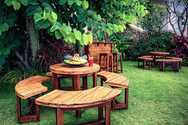 ventilateur de plafond; Salles à manger intérieures et extérieures; Bar dans la piscine, resto