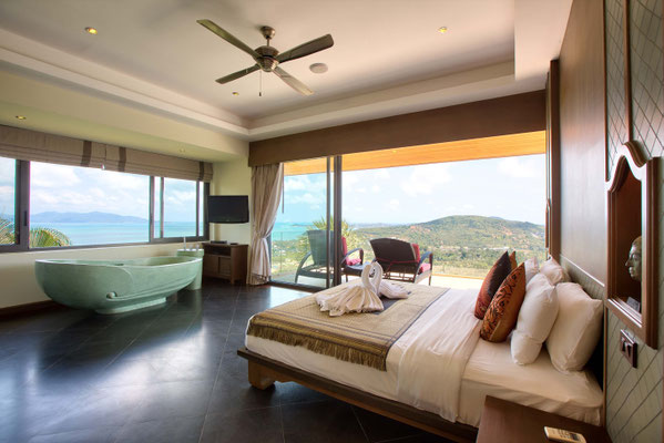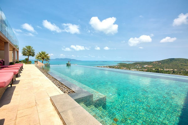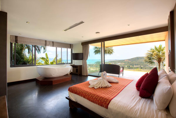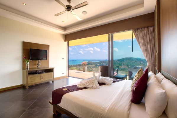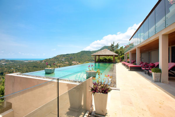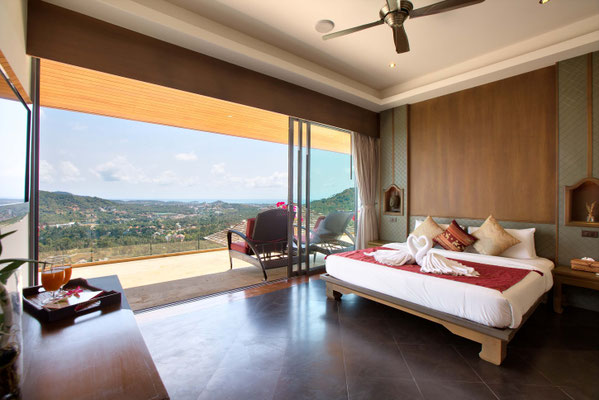 This villa of 400 sqm is a 5 bedrooms superior mountain top villa amongst the picturesque hills of Bo Phut that offers a stylish standard of living with stunning panoramic sea views.
