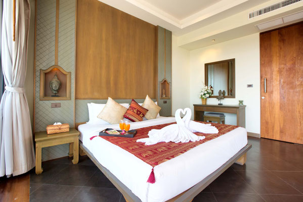 Les 5 chambres ont été aménagées avec des lits king-size de luxe, la climatisation, un coffre-fort, un mini-réfrigérateur et des ornements et des œuvres d'art thaïlandais chics. Toutes les superbes suites disposent de douches à effet pluie à écoulement libre et de baignoires en terrazzo et de luminaires en acier inoxydable poli.