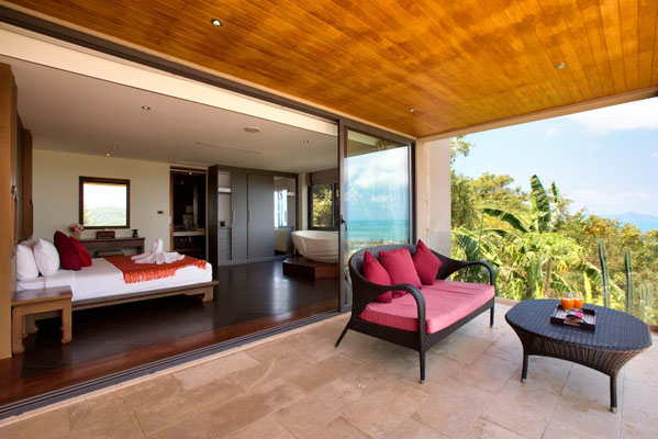 The villa was designed by an award winning Hong Kong based architect to create the ideal open plan lifestyle whilst maintaining a high level of privacy. Being located on Bophut Hill and gated off from public access gives guests the chance to loosen up and experience purely undisturbed relaxation far from the hustle and bustle of busy streets.