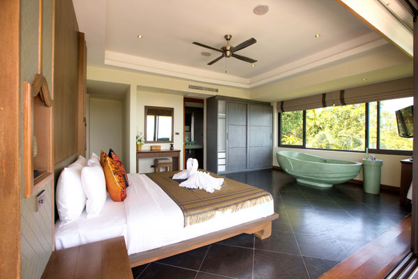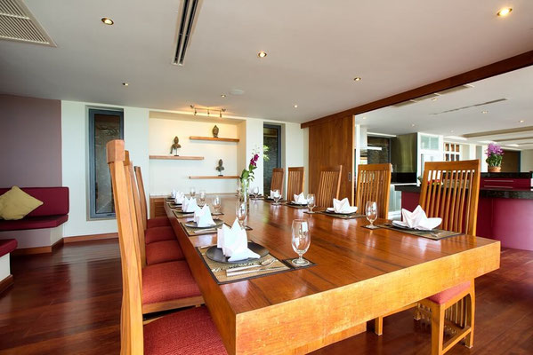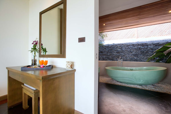 All 5 bedrooms have been appointed with luxury king-size beds, Air conditioning, safes, mini fridges and finished with chic Thai ornaments and artworks. All the stunning en-suites feature free flowing rain showers and terrazzo bathtubs and polished stainless steal fixtures.