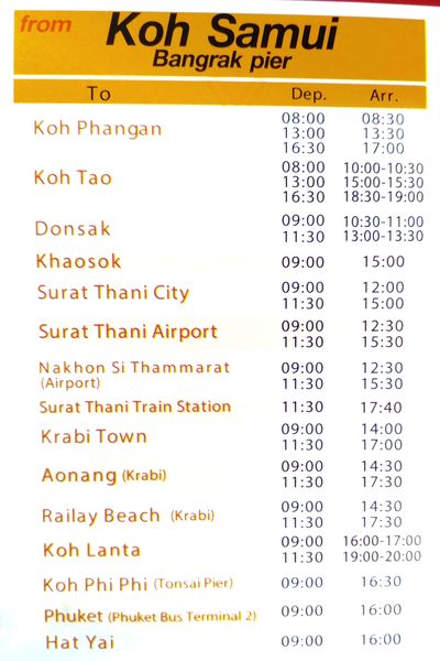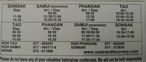 Voici les horaires et tarifs des bateaux Seatran discovery la 2eme compagnie la plus connue et la plus moderne, située a cote du Big Bouddha
